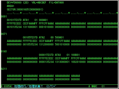 今回の例では、フロッピーディスク(FDU000)の順編成ファイル(DATA80)の内容を表示します。