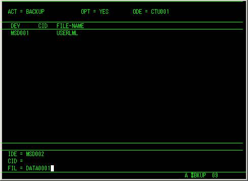 下の例では装置名が「MSD001」にある「USERLML」というファイルをバックアップしようとしています。