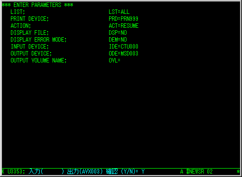 OVLの入力を省略すると、ボリューム名の確認画面が出ます。問題なければ「Y」と入力します。